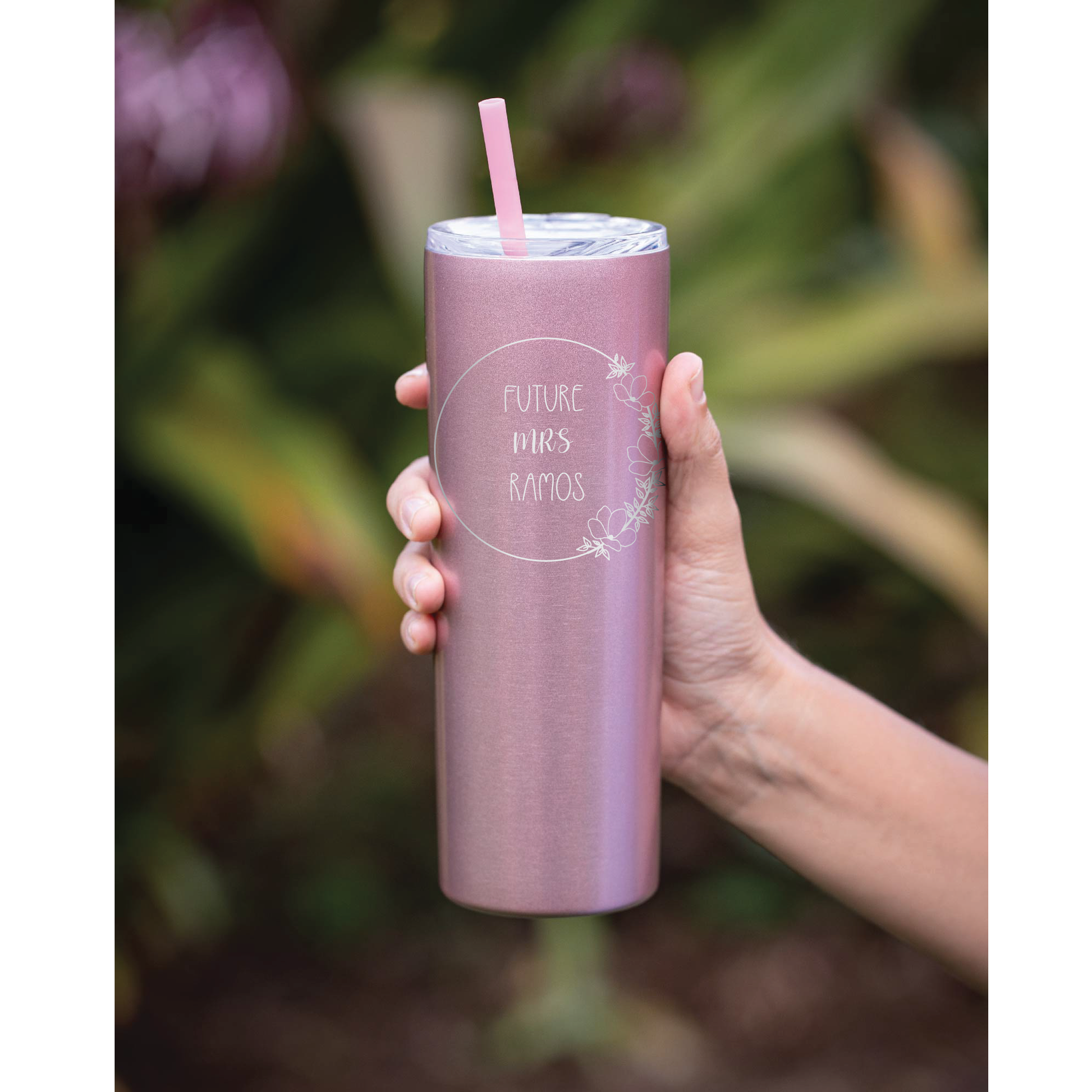20 oz Personalized Floral Future Mrs. Tumbler - Laser Engraved